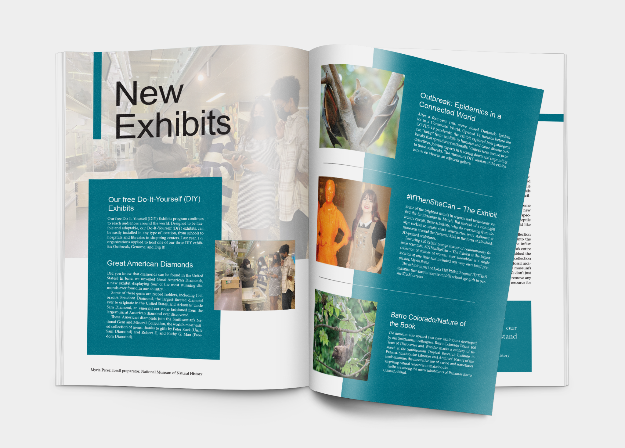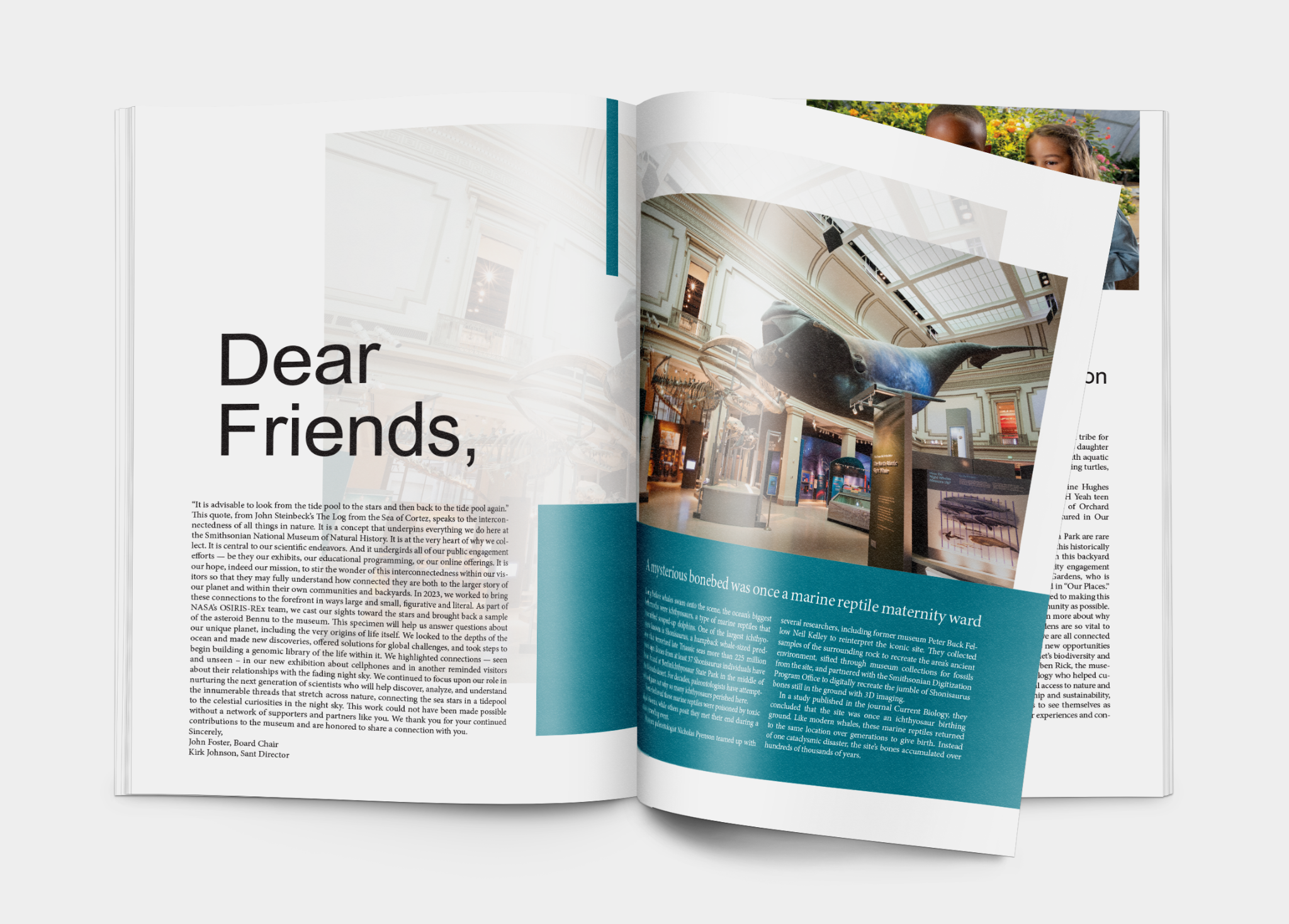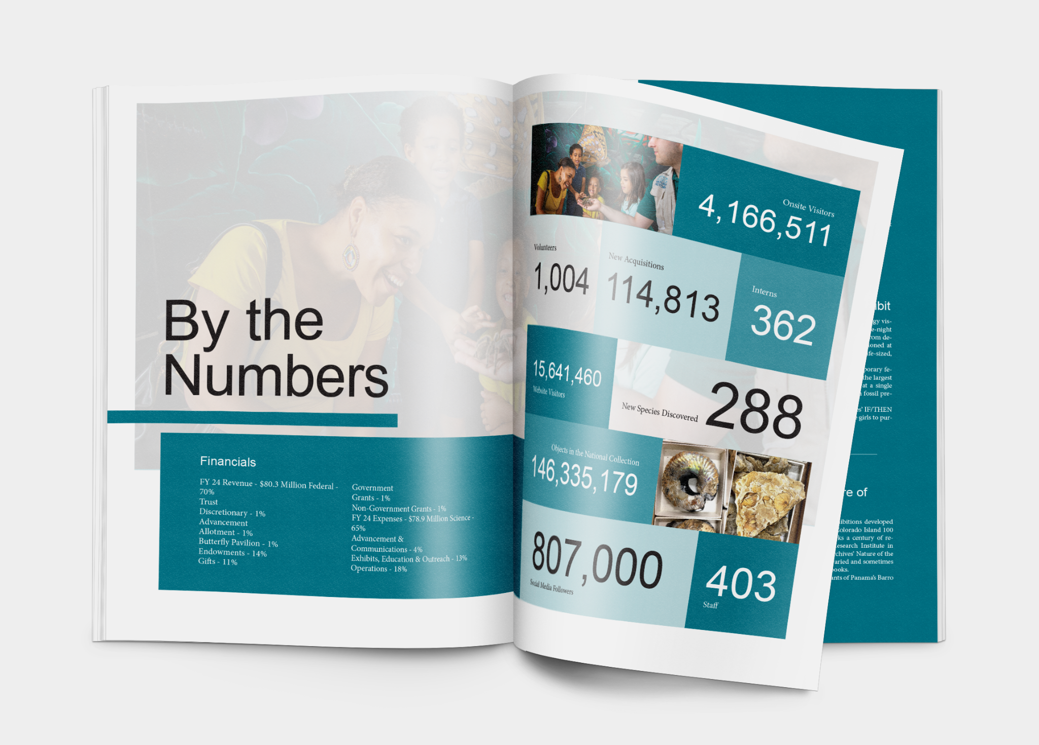 Redesigned the 2024 Annual Report for the Smithsonian National Museum of Natural History, centering the project on the theme Connecting People With Their Planet. Using bold typography, curated photography, and data-driven infographics, I created a consistent visual system that makes complex information engaging and accessible while highlighting the museum’s impact in science, education, and global conservation.