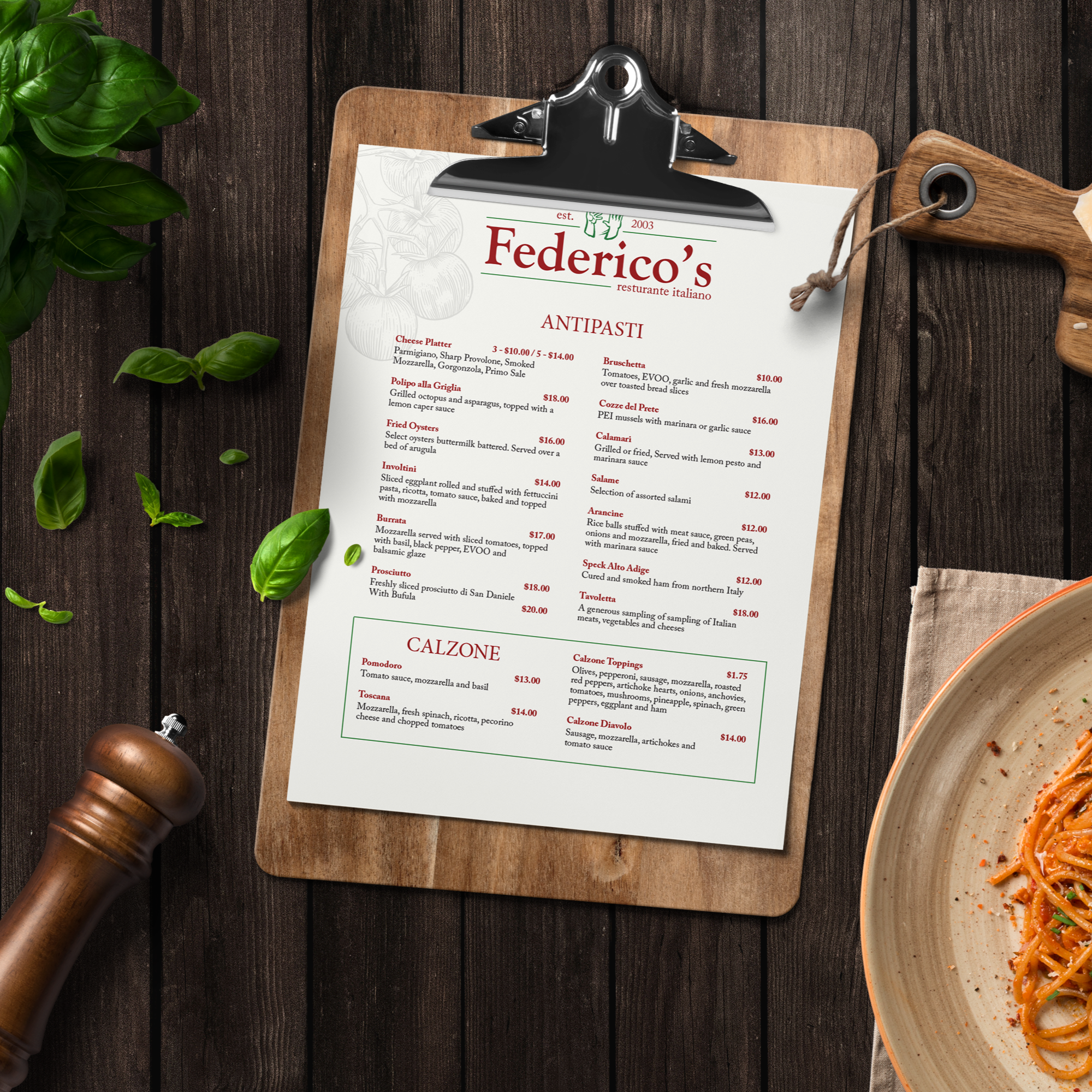 Designed a menu layout for an Italian restaurant, focusing on clear hierarchy, appetizing presentation, and easy readability. I organized the sections so that each category feels intuitive to navigate, while using typography and spacing to create a balanced, welcoming layout. The design aims to reflect the restaurant’s authentic, classic character and enhance the dining experience by making the menu both visually engaging and easy to scan.